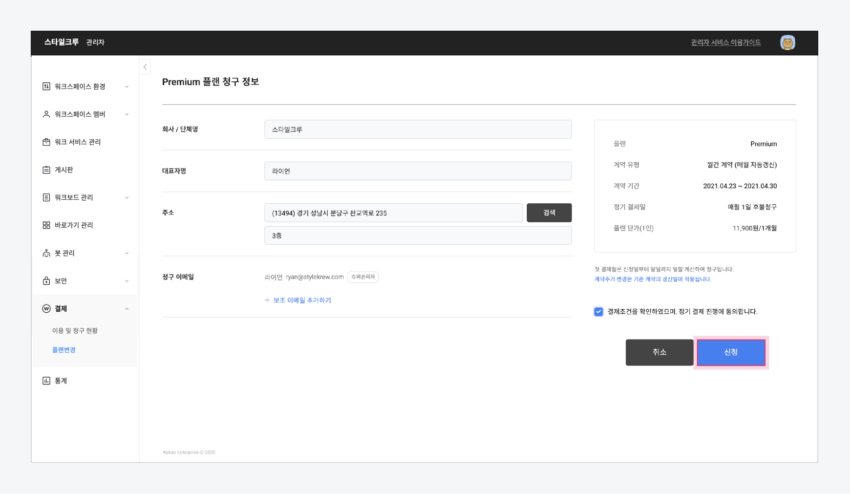 ### 청구 정보 수정하기 <a href="#change-info" id="change-info"></a>