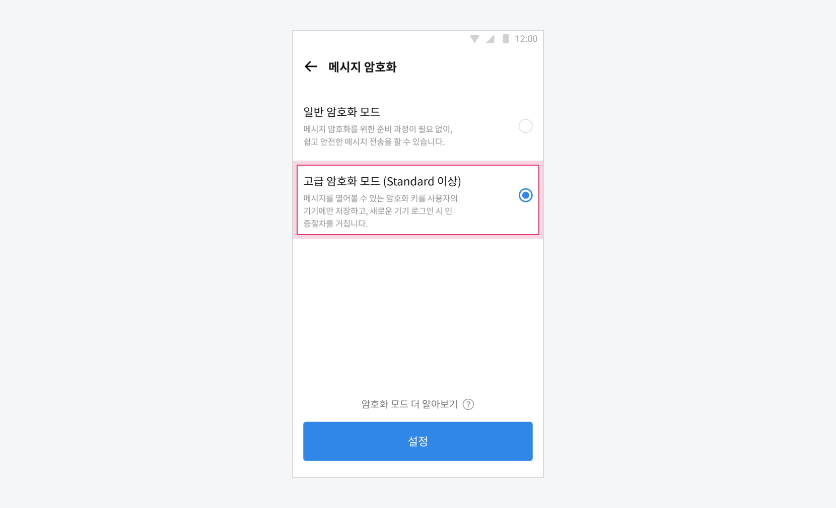 일반 암호화 모드를 고급 암호화 모드로 변경하면 강화된 보안 체계를 바탕으로 카카오워크를 이용할 수 있습니다.
