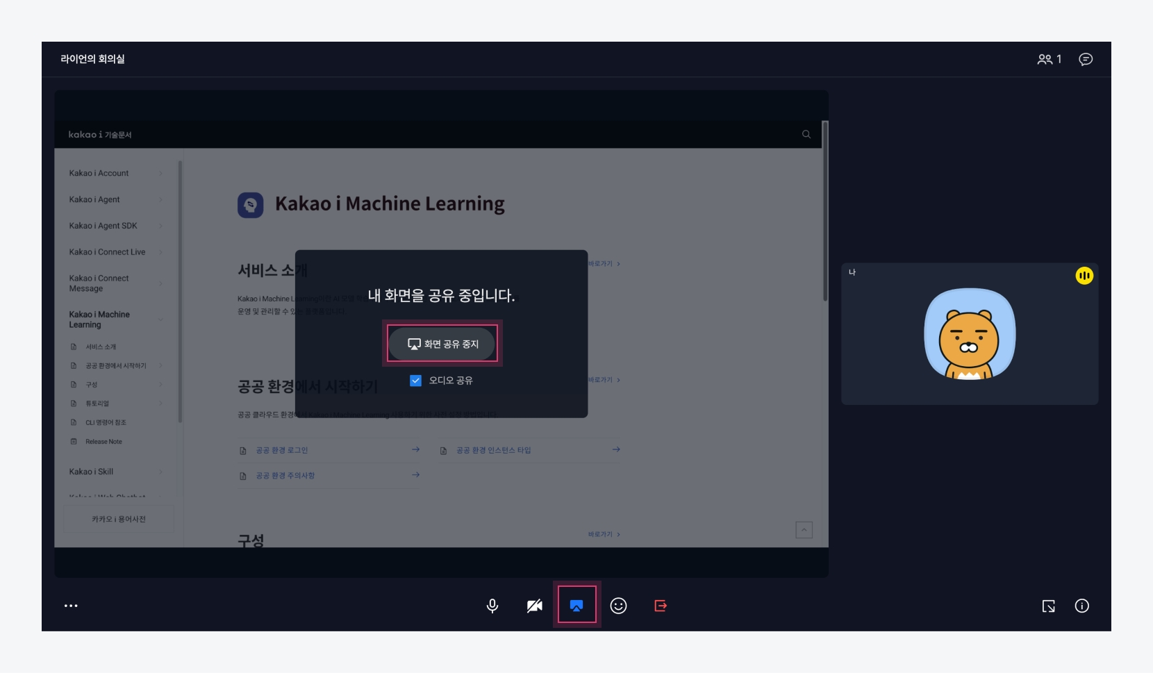 내 화면 공유 중지