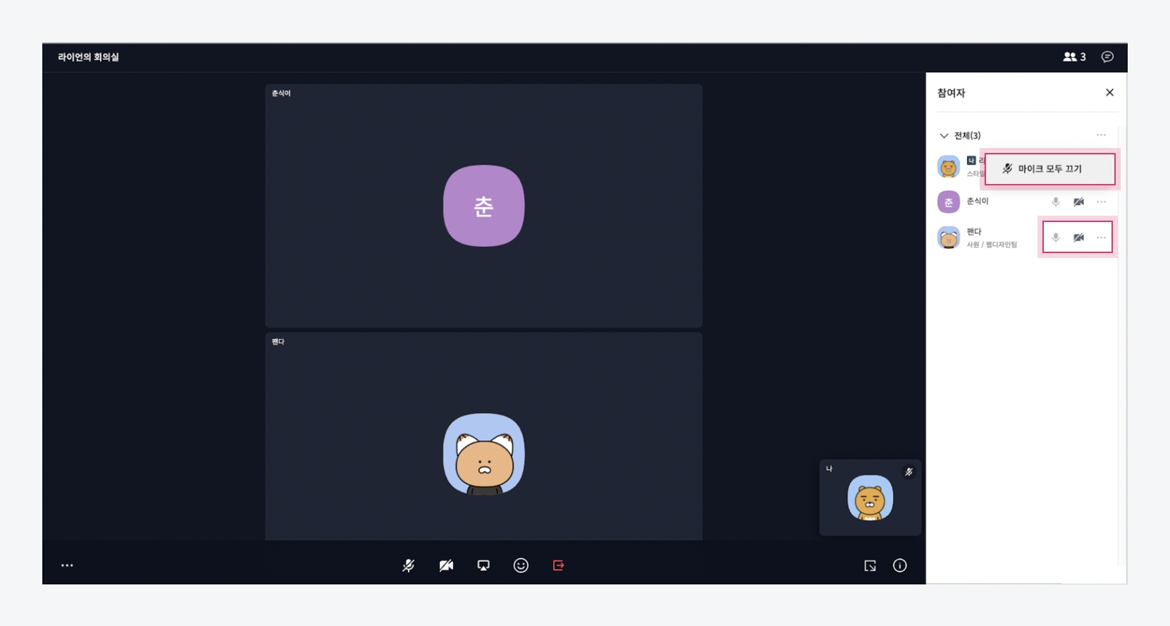 참여자 마이크/카메라 끄기