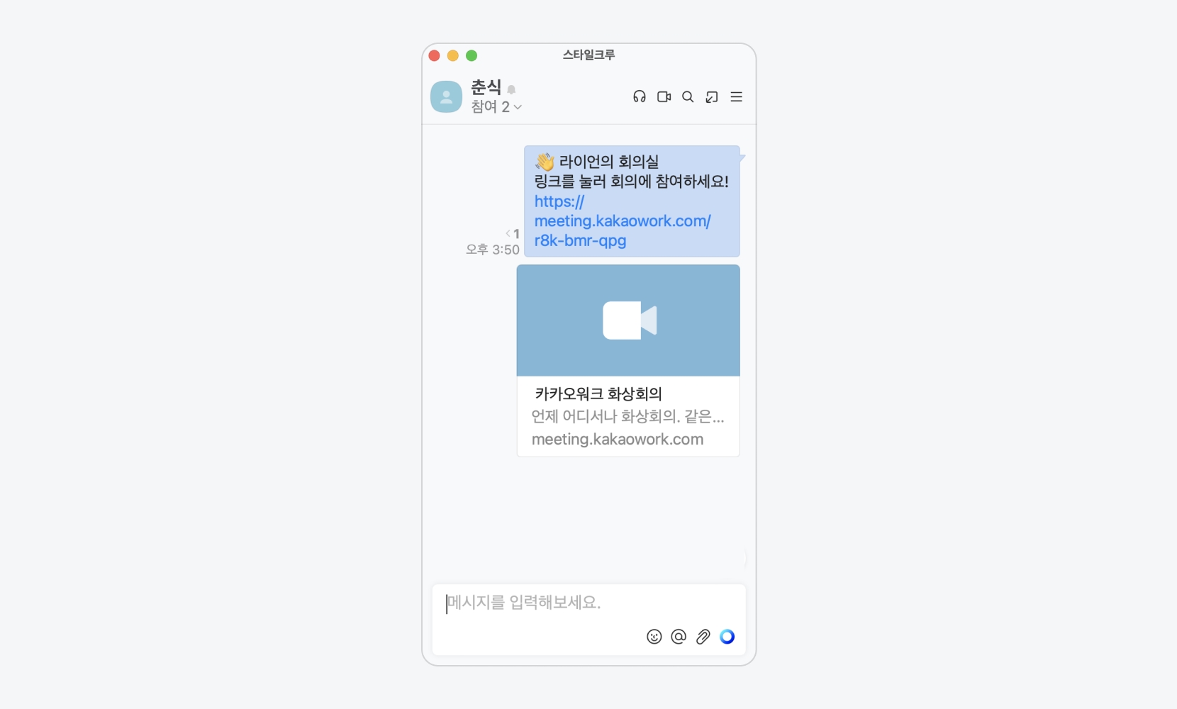 채팅방에 메시지로 회의 링크를 자동 공유