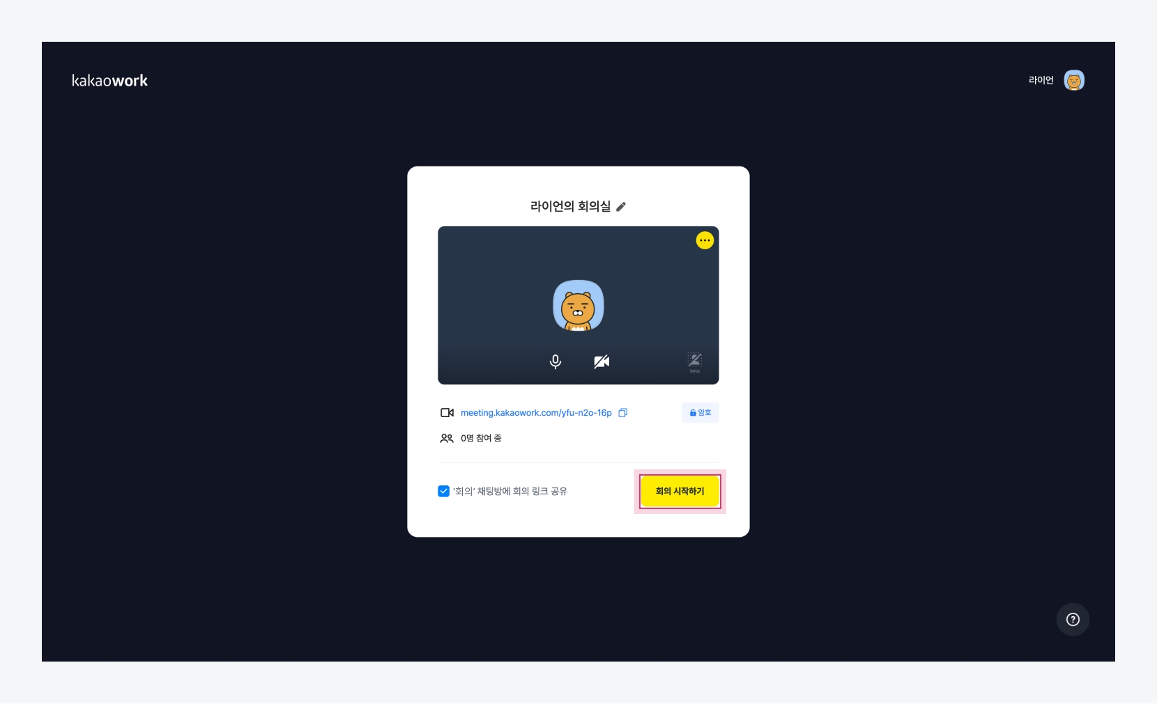 회의 시작 회의에 초대할 참여자들에게 복사한 링크를 공유합니다.