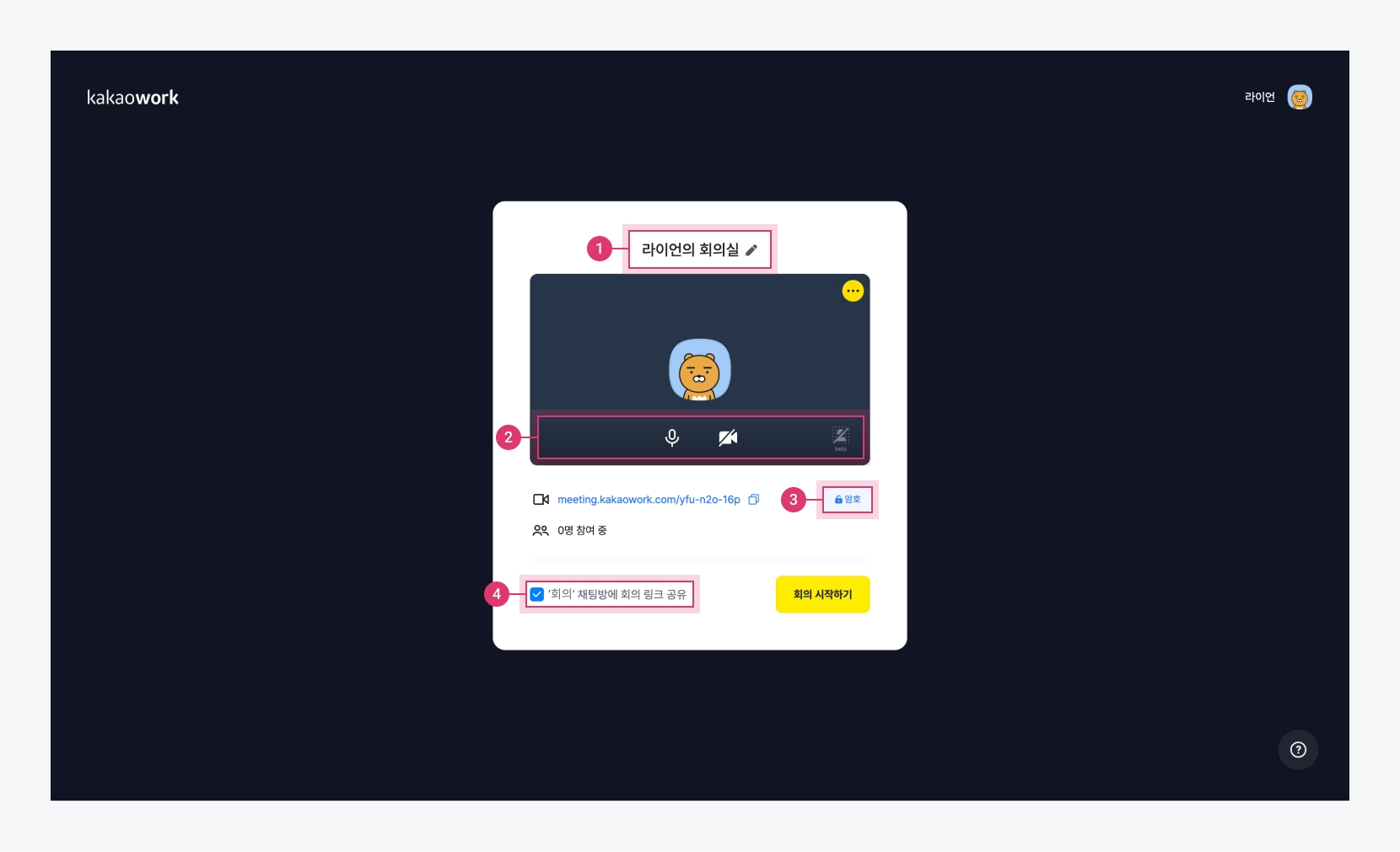 {주최자}의 회의실- 회의실 이름은 50자 이내로 지정 가능⓶ 설정