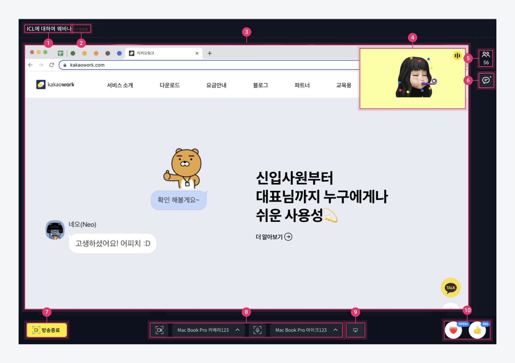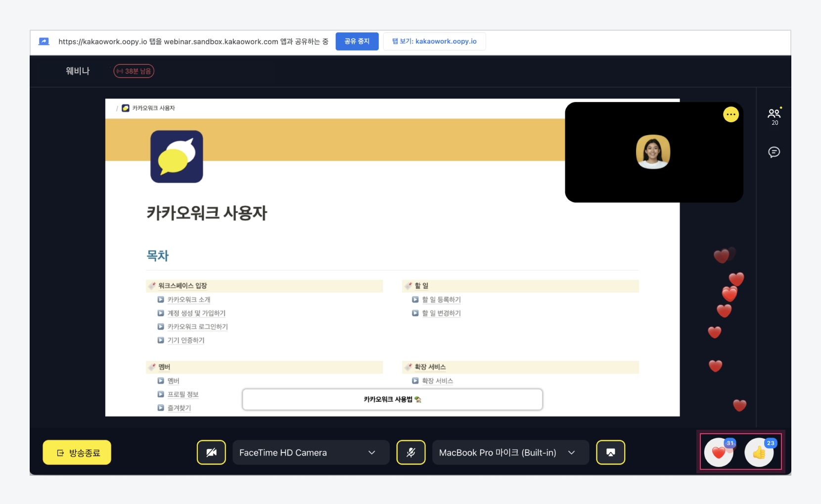 하트와 좋아요로 상호작용 - 웨비나 참여자만 리액션 가능