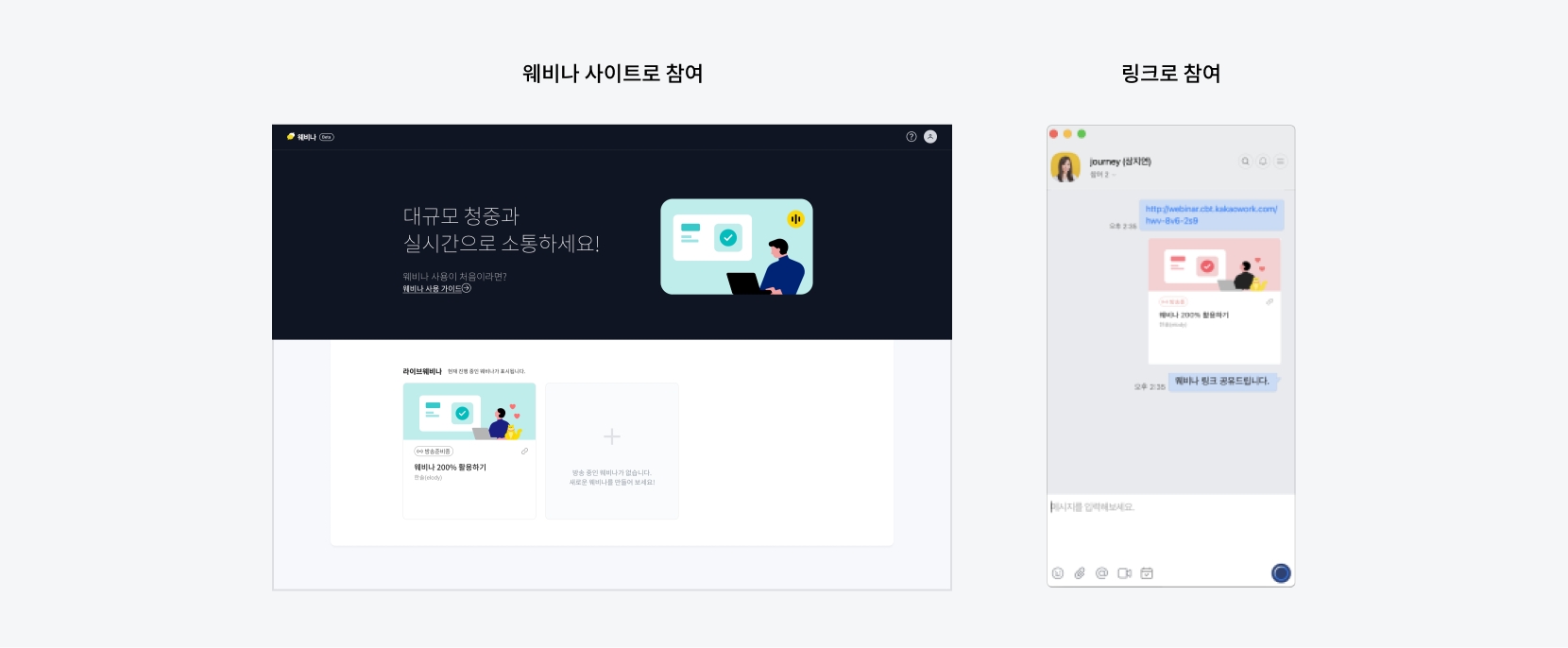 웨비나에 접속하여 참여하는 방법을 안내합니다.